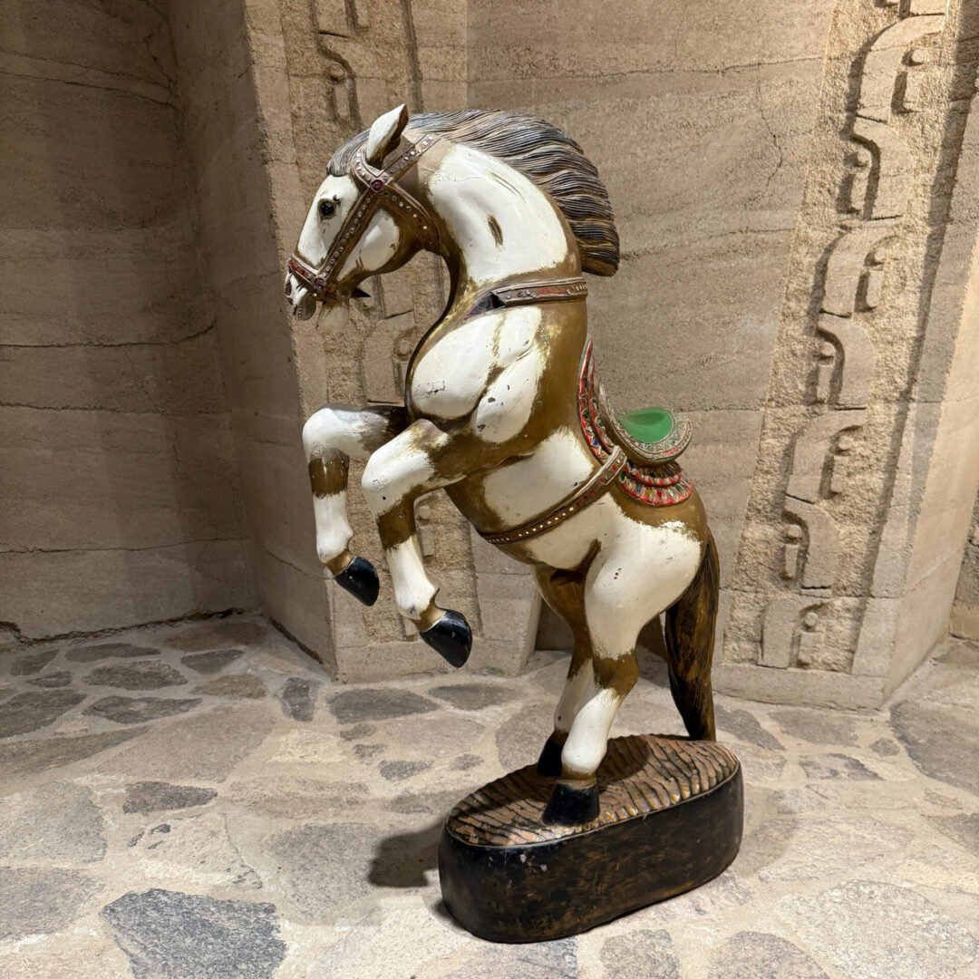 Antique Hand Carved Wood Polychrome Painted Horse Sculpture Statue