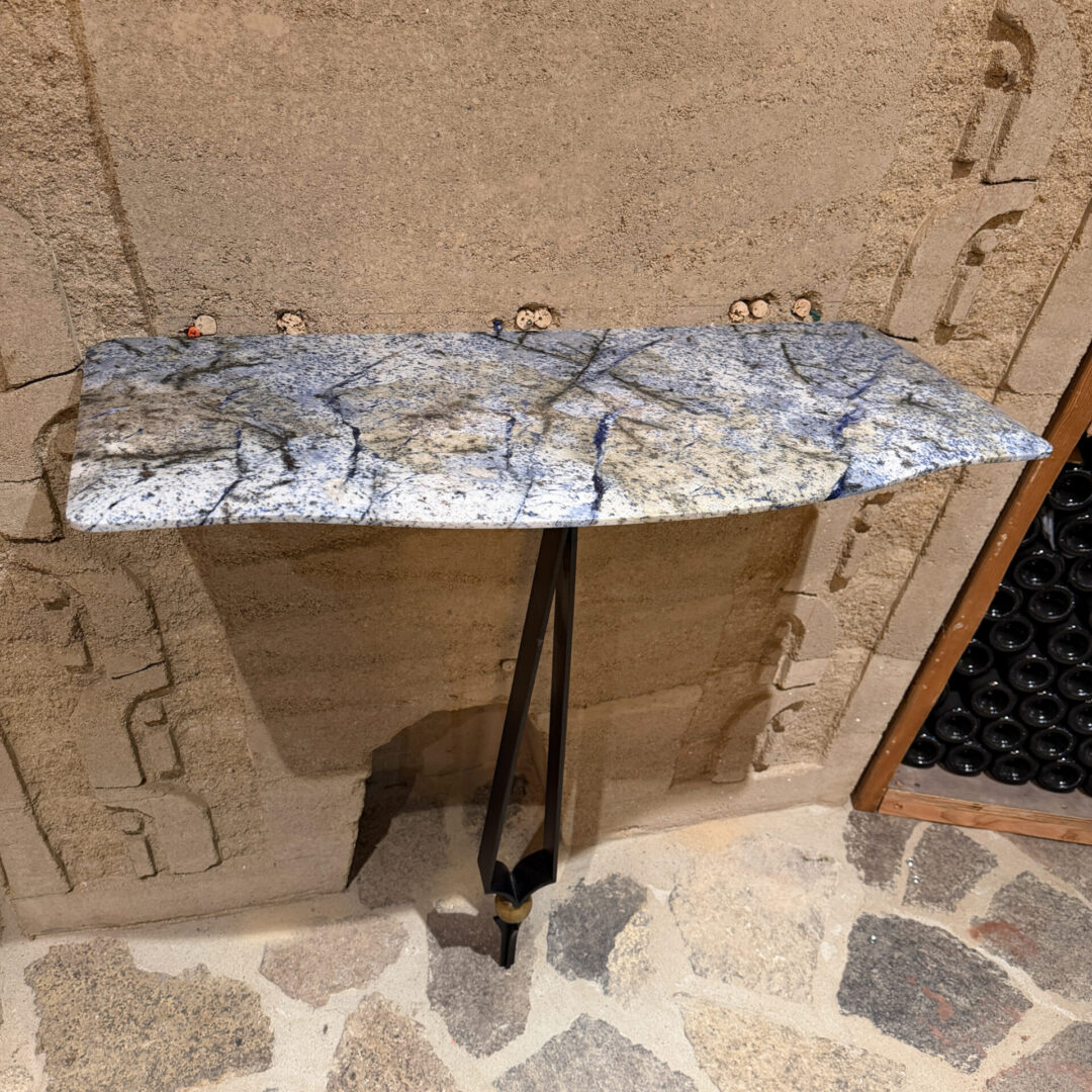 Wall Console Table Mexican Modernist Prouve Era Forged Iron Bronze Blue Stone