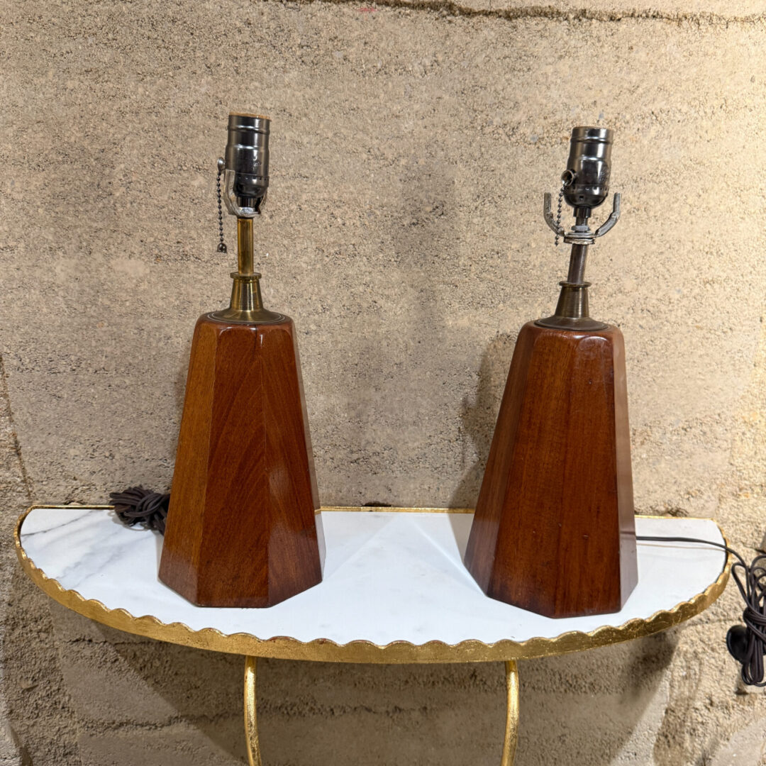 For your consideration, a 1950s modern table lamps in mahogany & brass by Angelita Mexico
