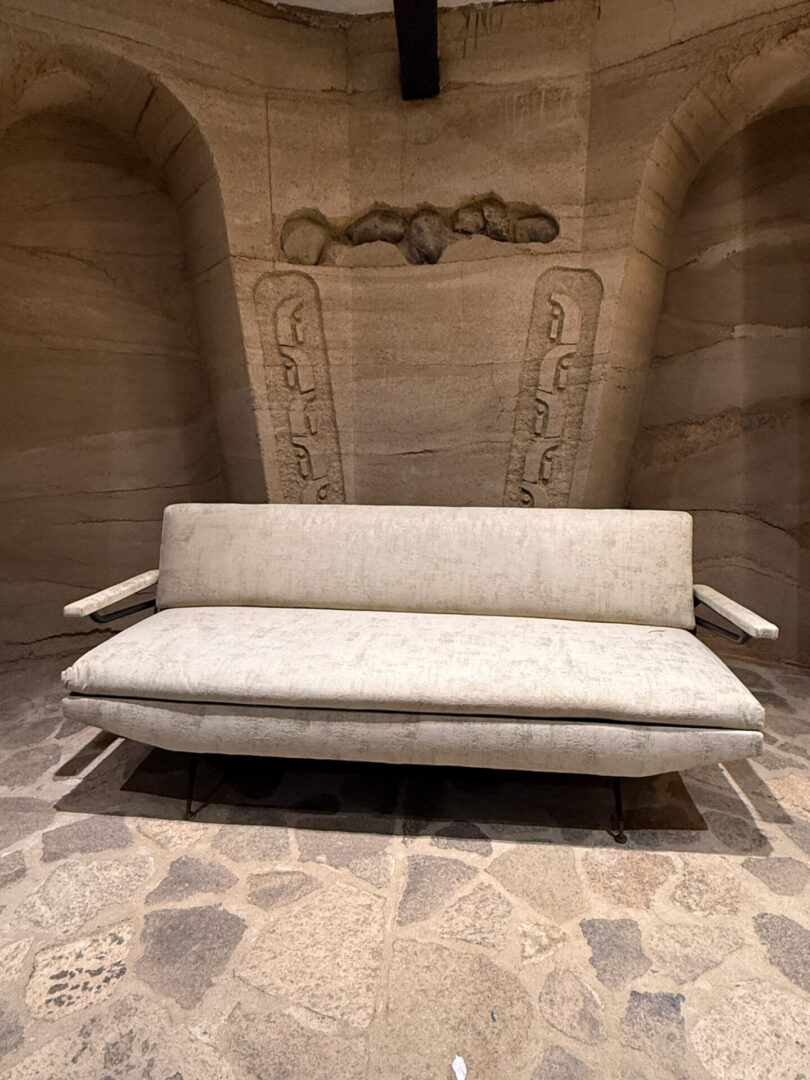 For your consideration, a 1950s Italian Sofa-Day Bed manner of architect designer Osvaldo Borsani. Iron and Wood. New upholstery. Unmarked. Arms can be lifted providing more room for afternoon siesta. Daybed has adjustments underneath the cushions that allow different angles.