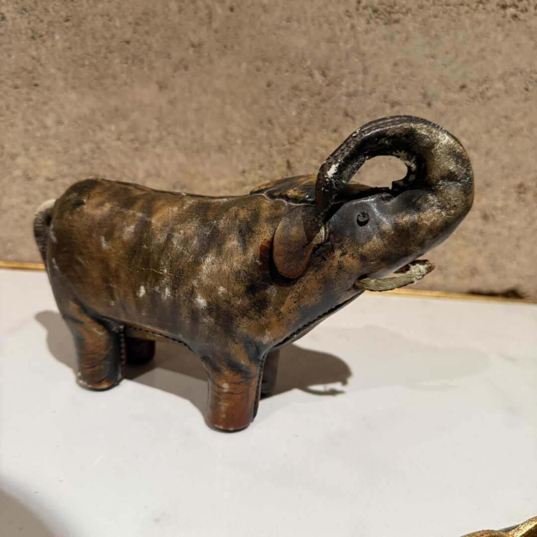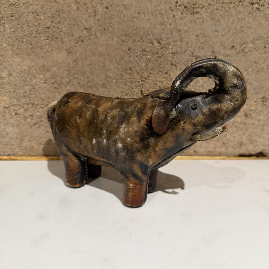 Mid-Century Modern Omersa Leather Elephant Door Stop Sculpture for Valenti Spain