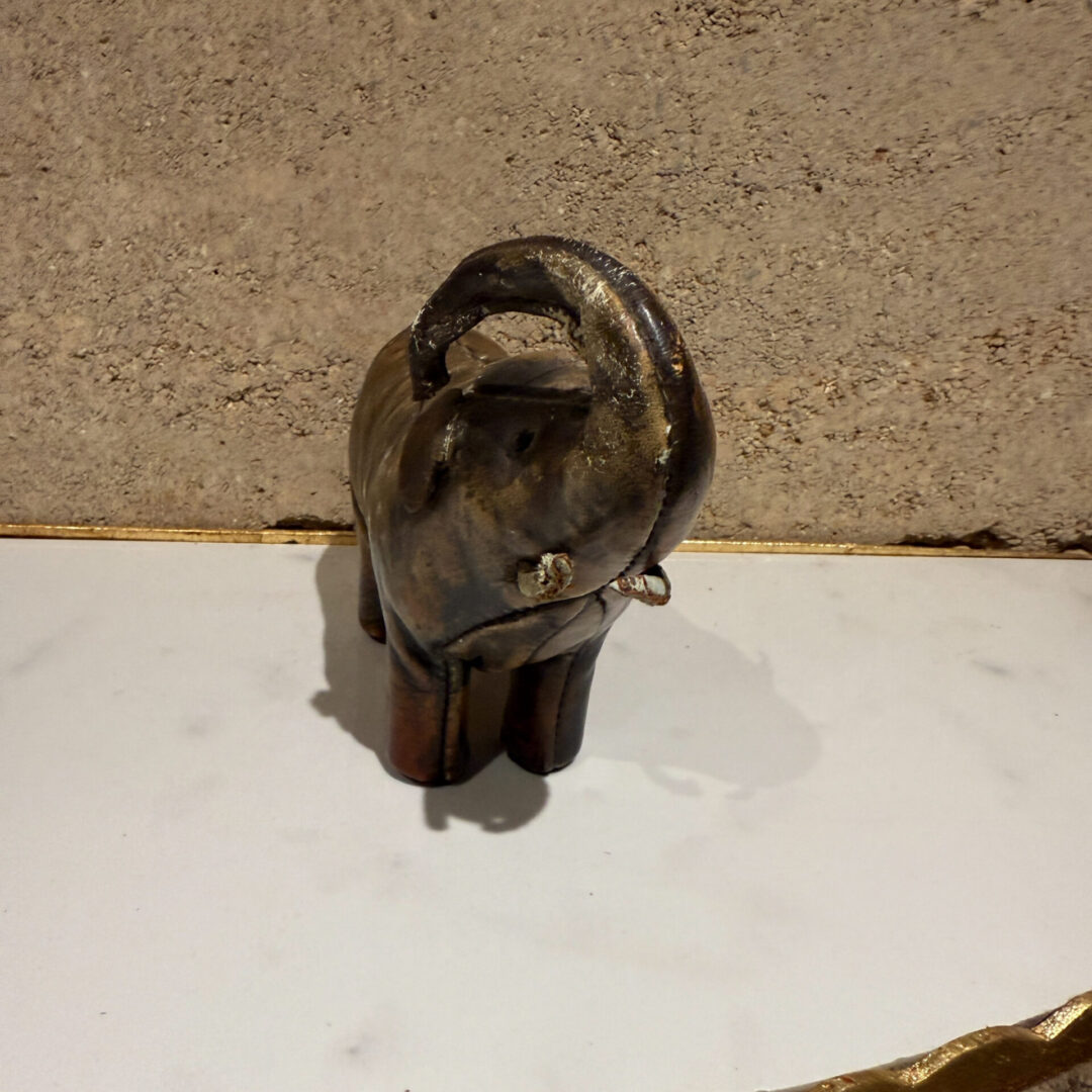 For your consideration, a Dimitri Omersa Leather Elephant Sculpture or door stop for Valenti Spain. Stamped by the retailer. In the style of Abercrombie and Fitch.