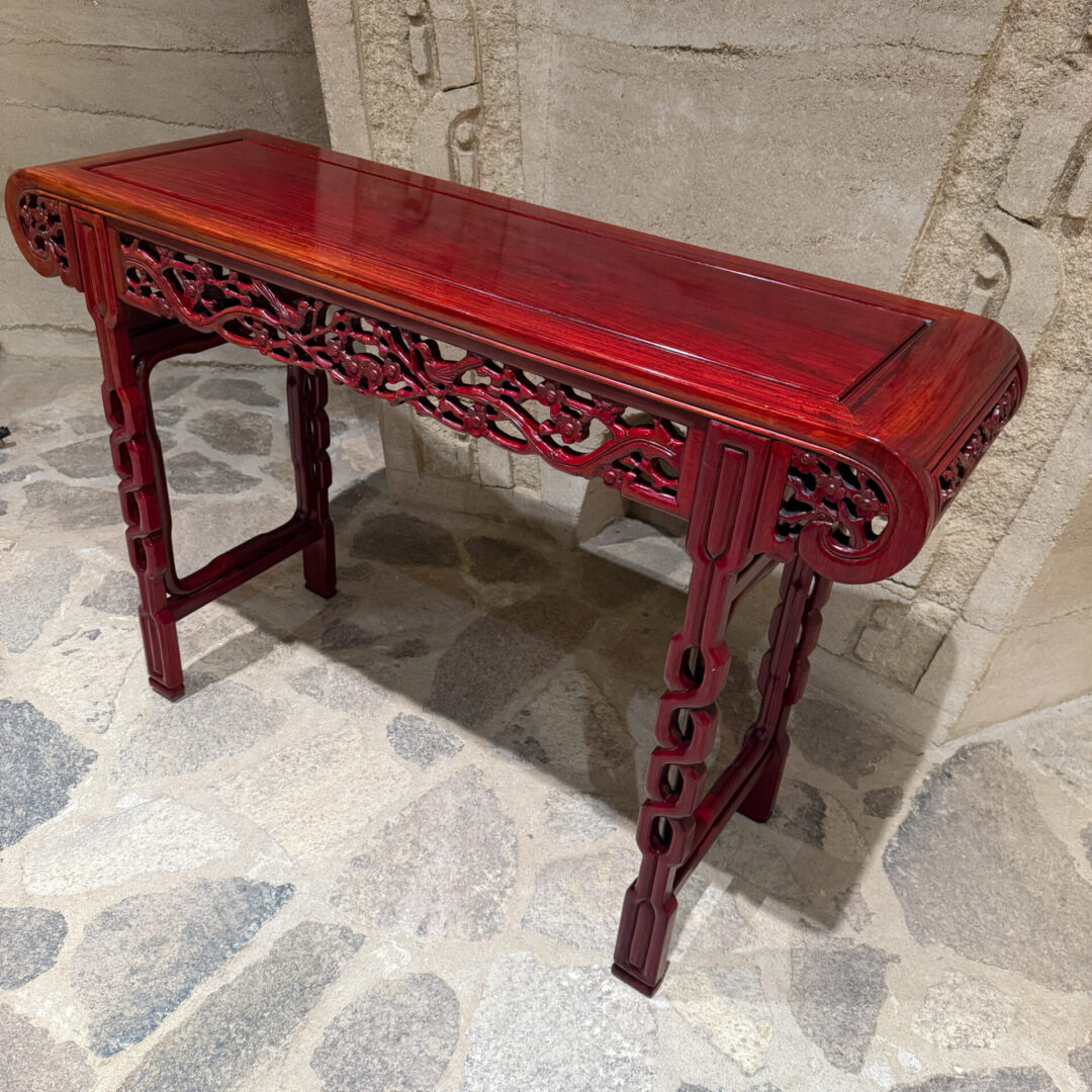 For your consideration, a Chinese altar console foyer table. Constructed with wood (rosewood) with intricately carving.