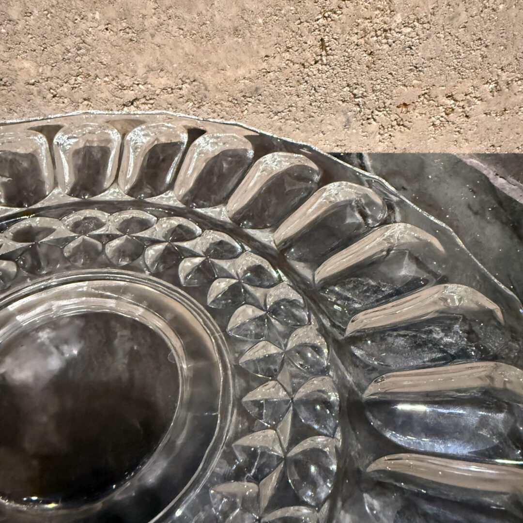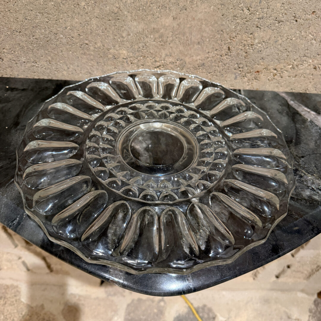 For your consideration a vintage modern glass cake stand . Unmarked. No information on the maker. No glass dome.