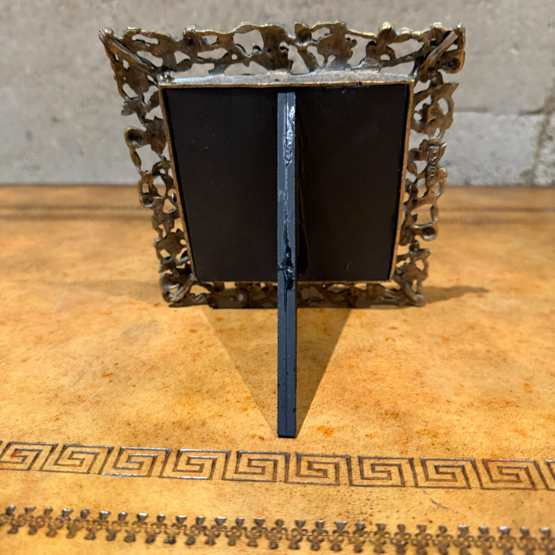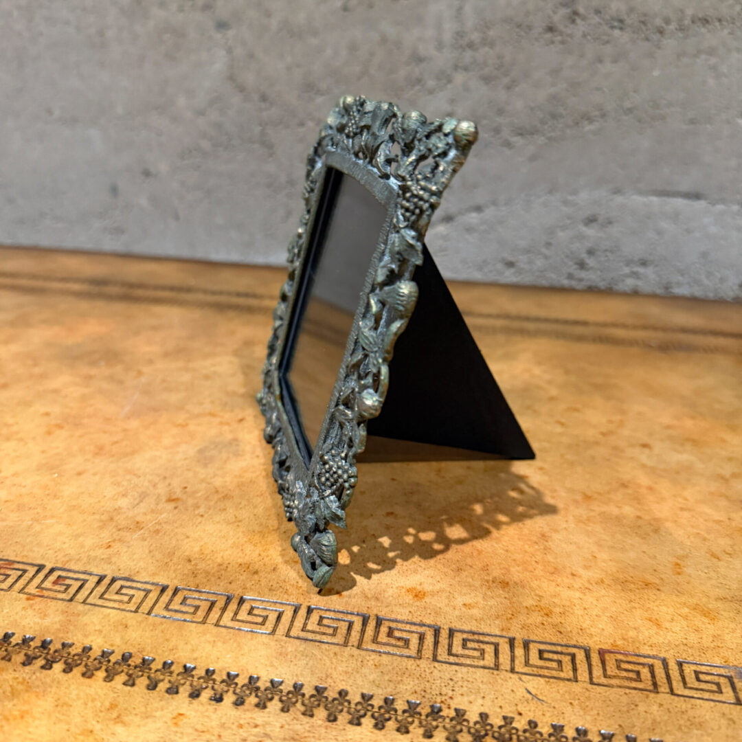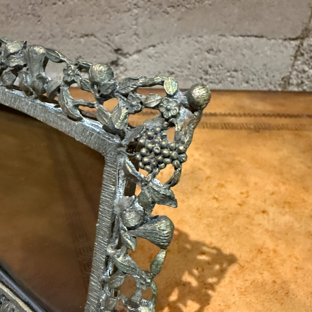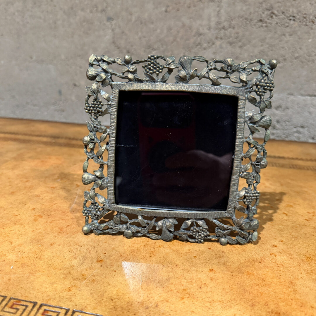 For your consideration, a picture frame with intricate floral and vine design, this vintage-style picture frame is likely made of pewter . Similar frames featuring this “grapes and vines” motif are often associated with brands like Sun Metal, Heritage Metalworks, or Metzke.