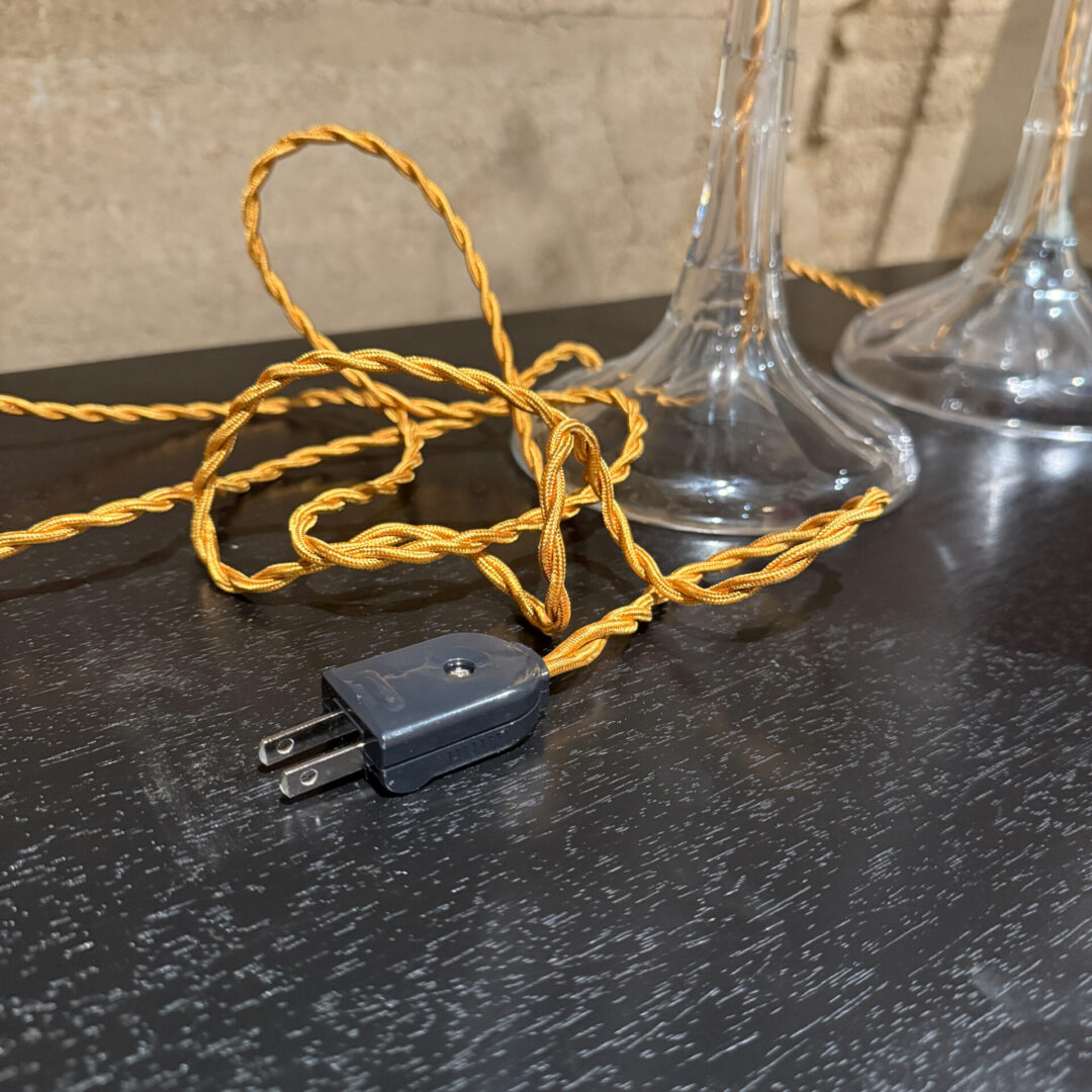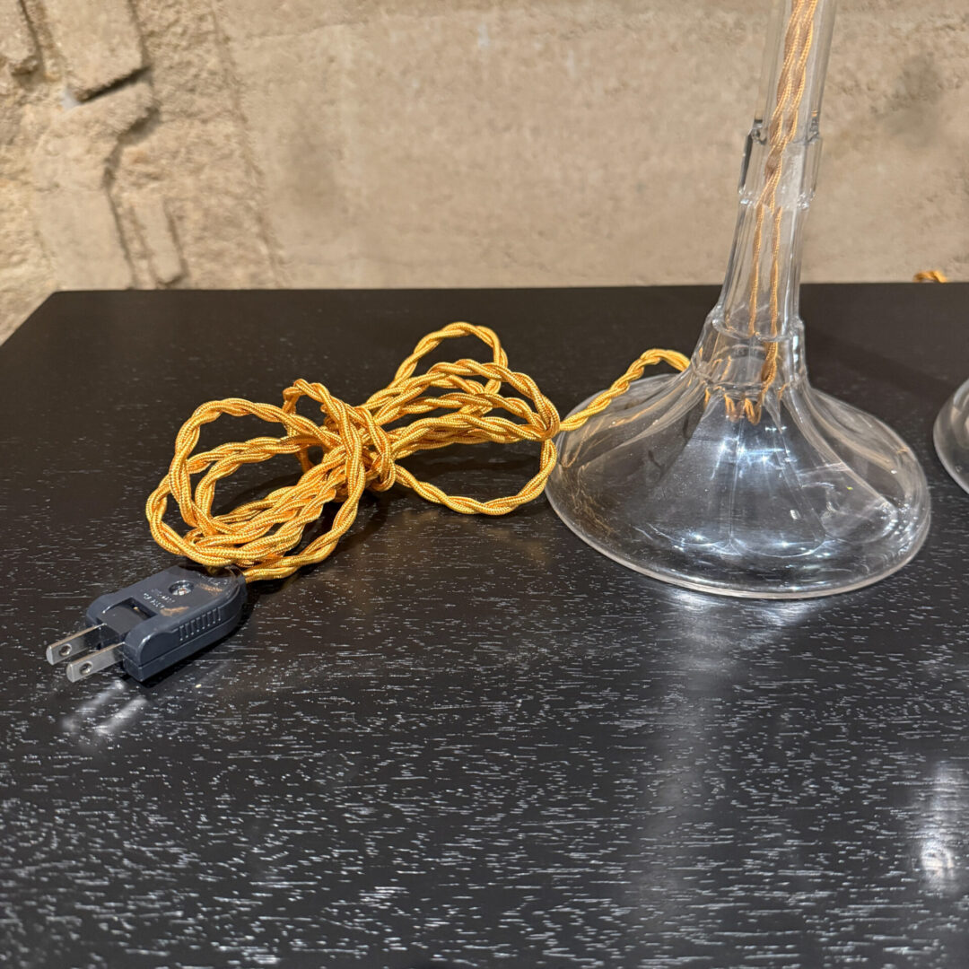 Rewired, new socket, new twisted rope electric cord in gold tones and new plug. Crystal body and shade on original vintage unrestored condition.