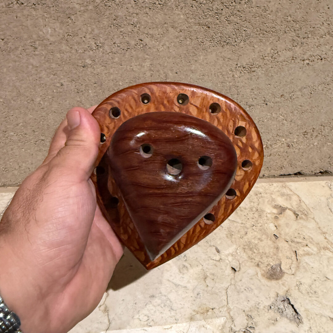For your consideration, a studio pencil holder in custom wood. Organic modern design. Unmarked. In the style of Nakashima.