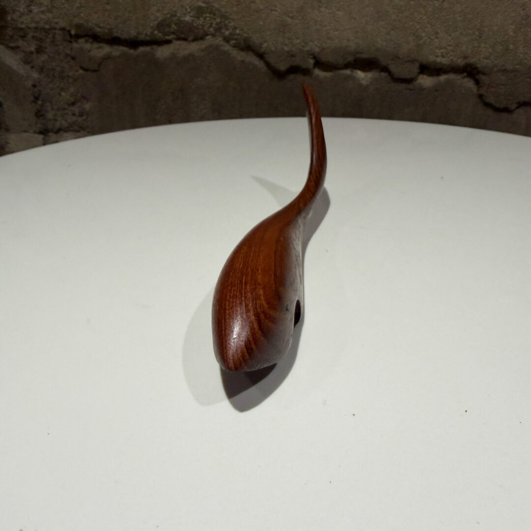 Sculptural fish or shark shape, minimalist Danish modern style.