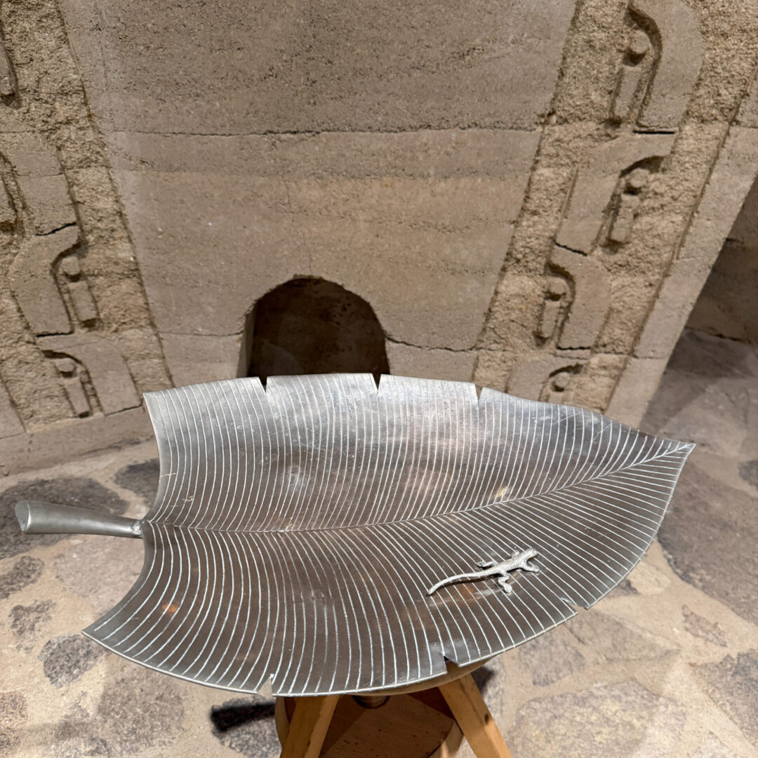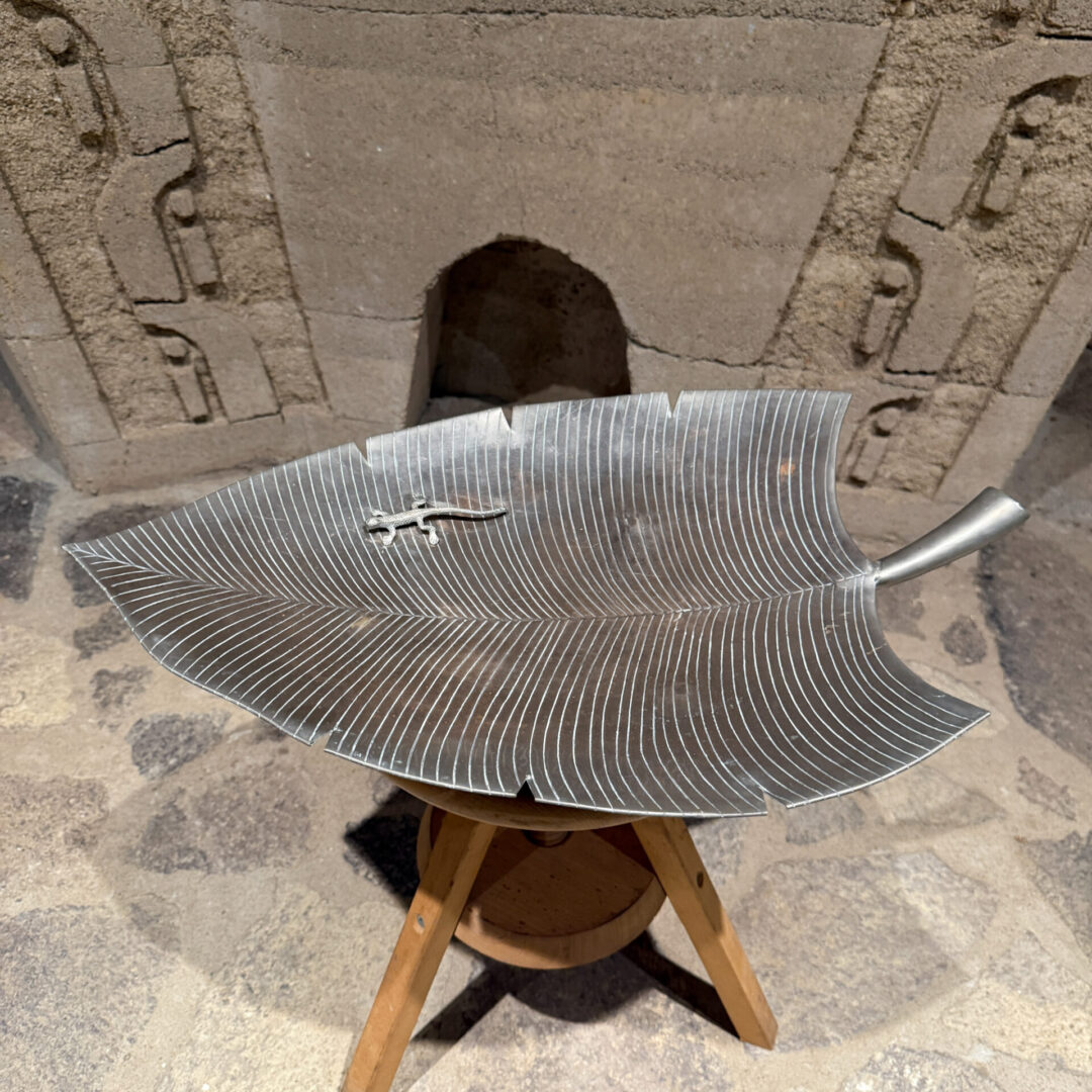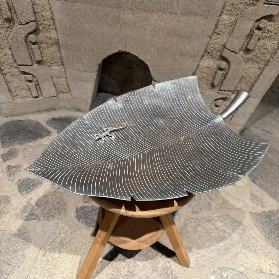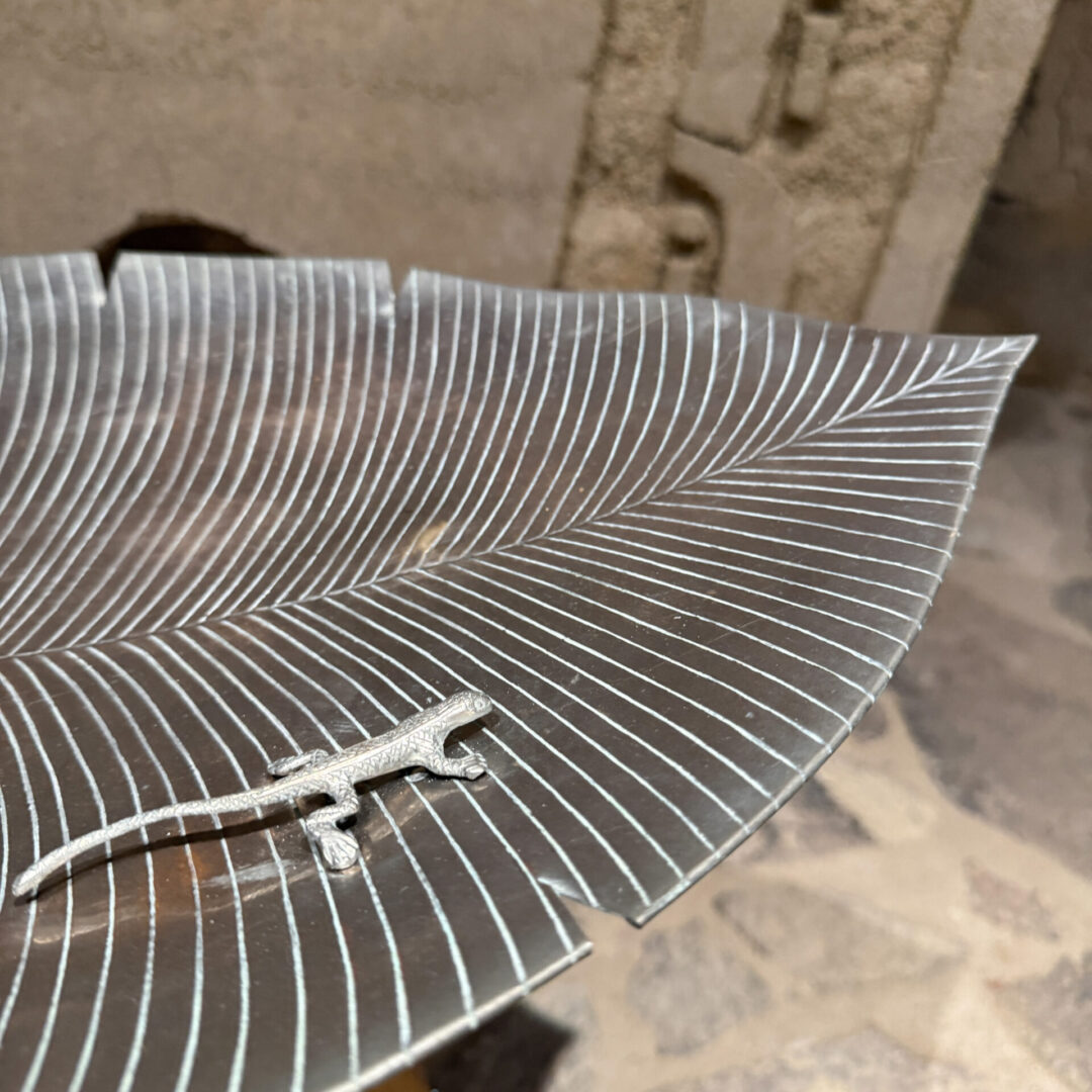 For your consideration, Towle Silversmith Nickel Plated Leaf Serving Tray Lizard Decor