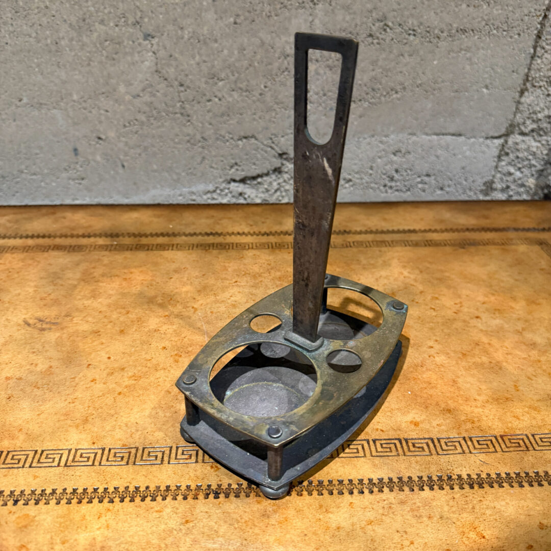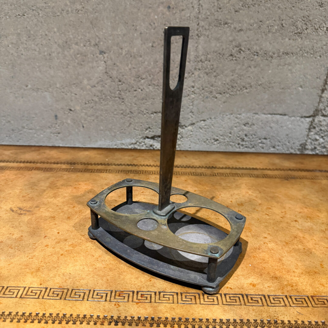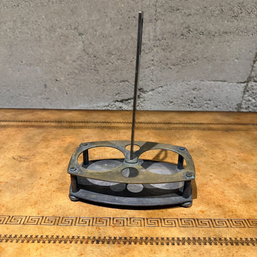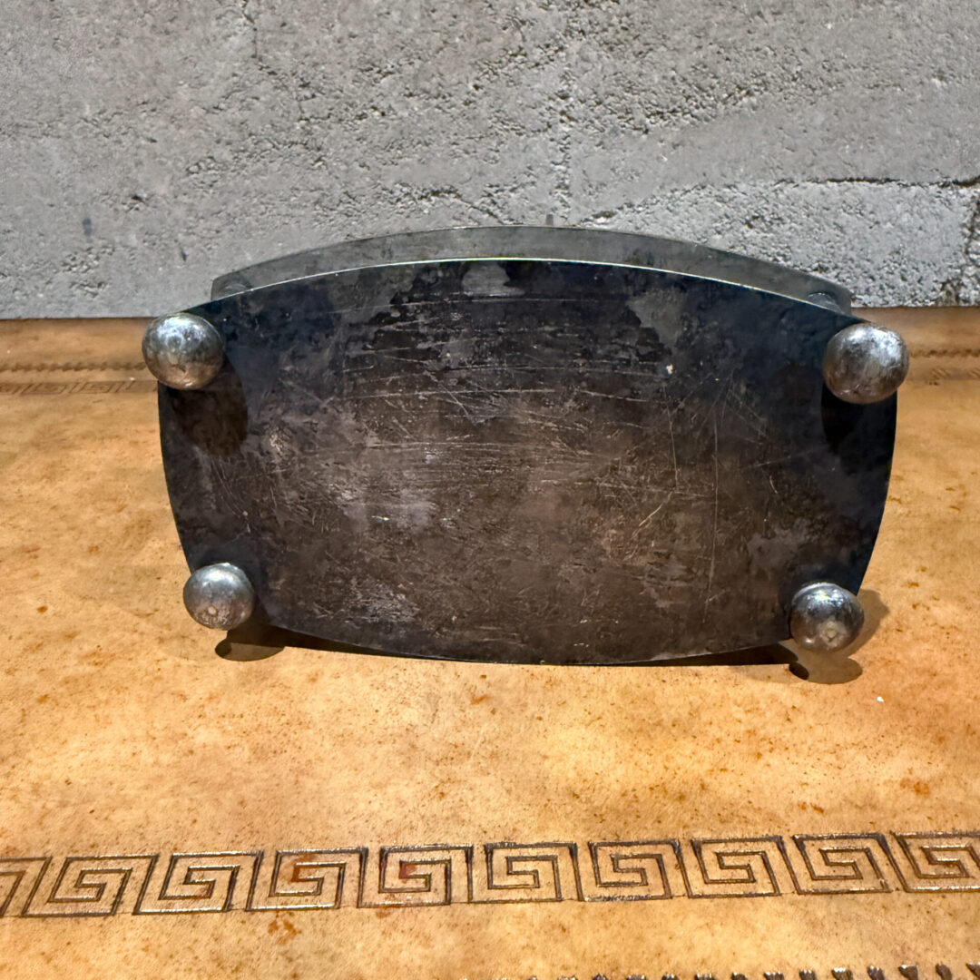 For your consideration, a vintage metal cruet stand or carrier, likely used for holding oil and vinegar bottles. Brass Silver-plated with vintage patina. Some areas of the silver are faded. It doesn’t have a stamp from the maker. Mid-Century period.