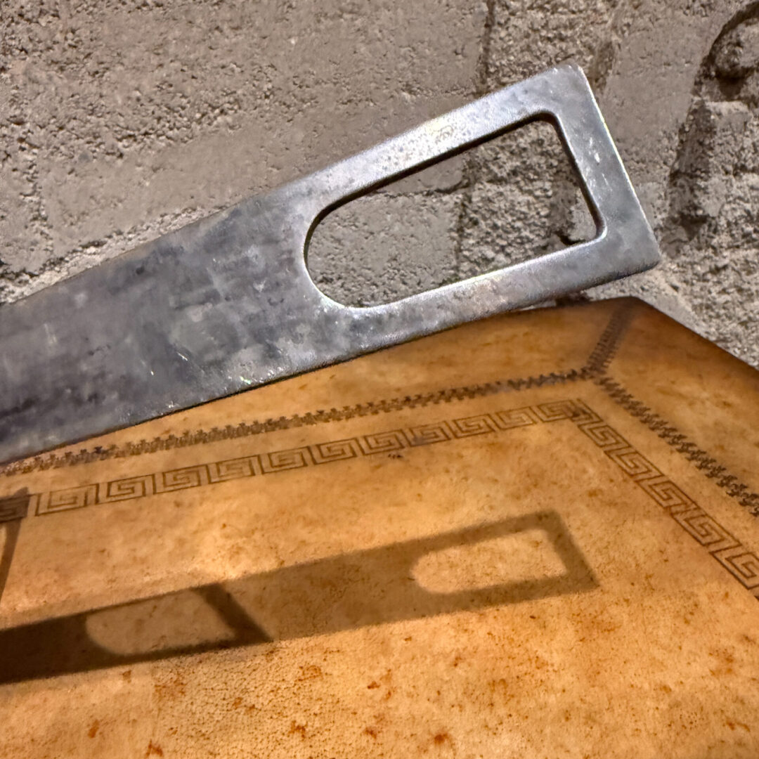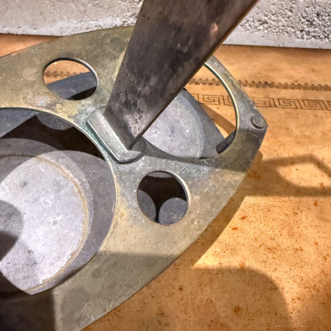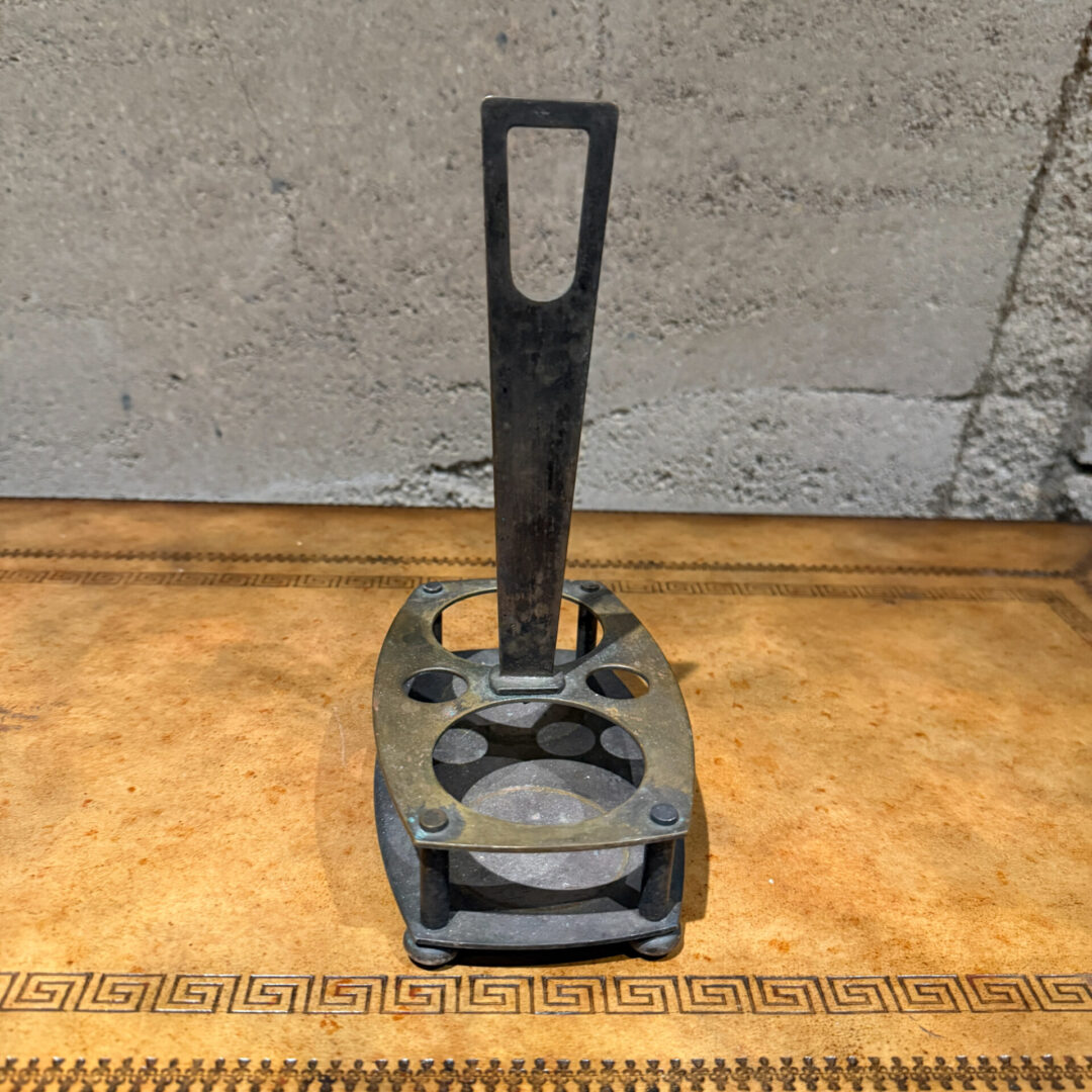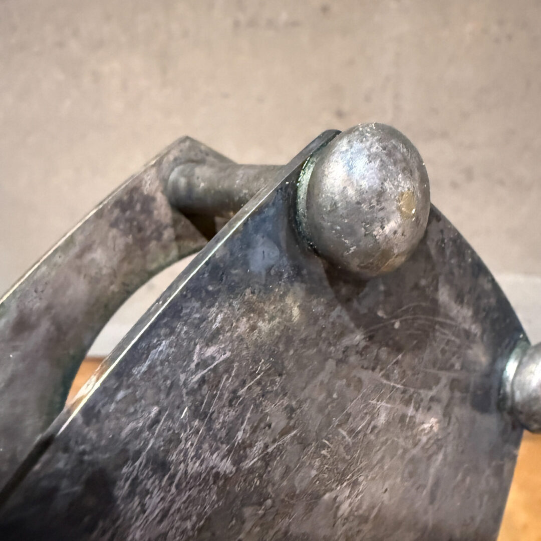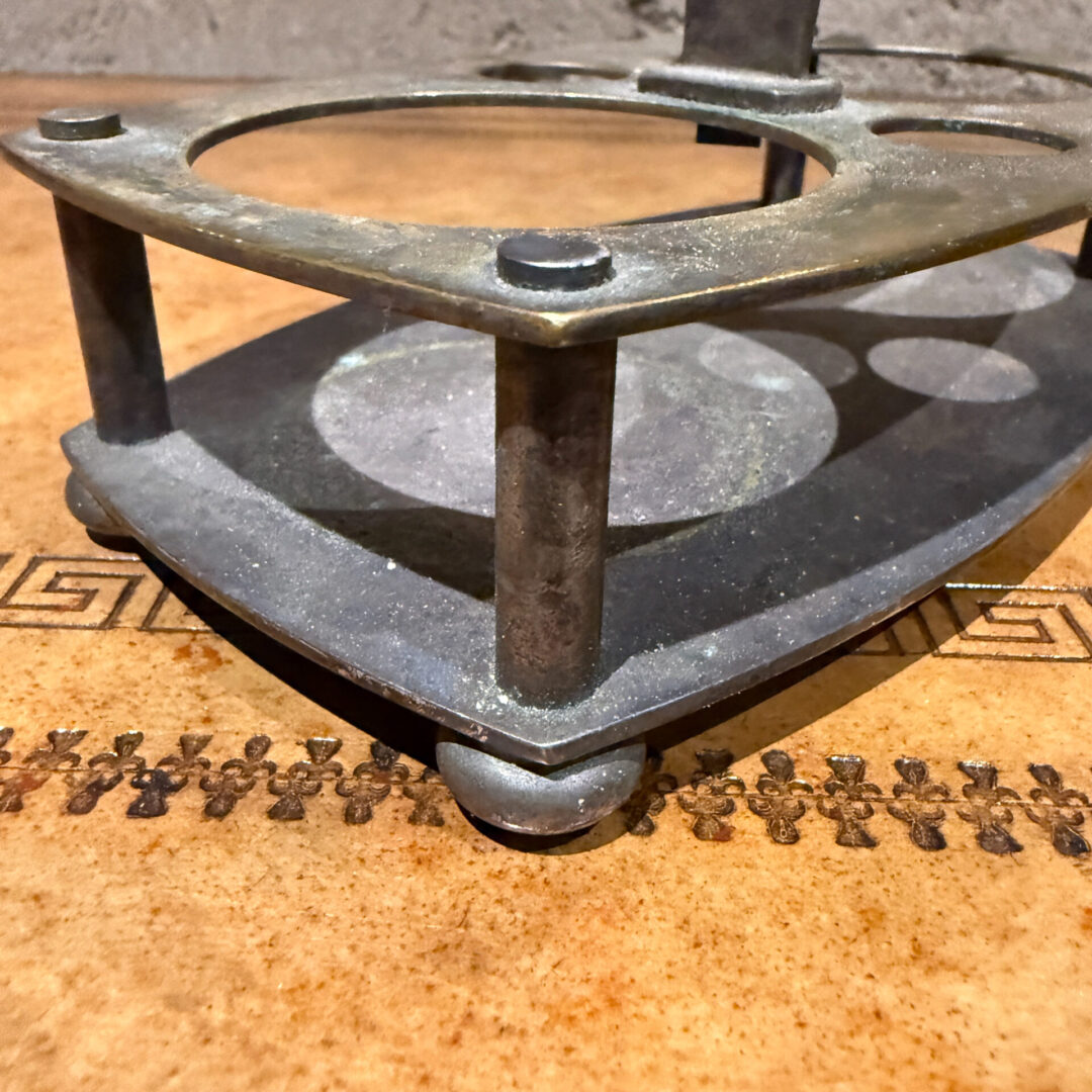 For your consideration, a vintage metal cruet stand or carrier, likely used for holding oil and vinegar bottles. Brass Silver-plated with vintage patina. Some areas of the silver are faded. It doesn’t have a stamp from the maker. Mid-Century period.